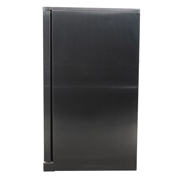 Avec sa porte en verre trempé très résistante, les aliments et boissons restent bien à l’abris de l’air extérieur. Sur ce modèle, l’ouverture de la porte est située sur le côté gauche. Une version avec ouverture à droite est également disponible chez Raviday. 2 étagères à l’intérieur permettent d’entreposer tous les aliments que vous voulez avec un volume maximum de 135 litres.